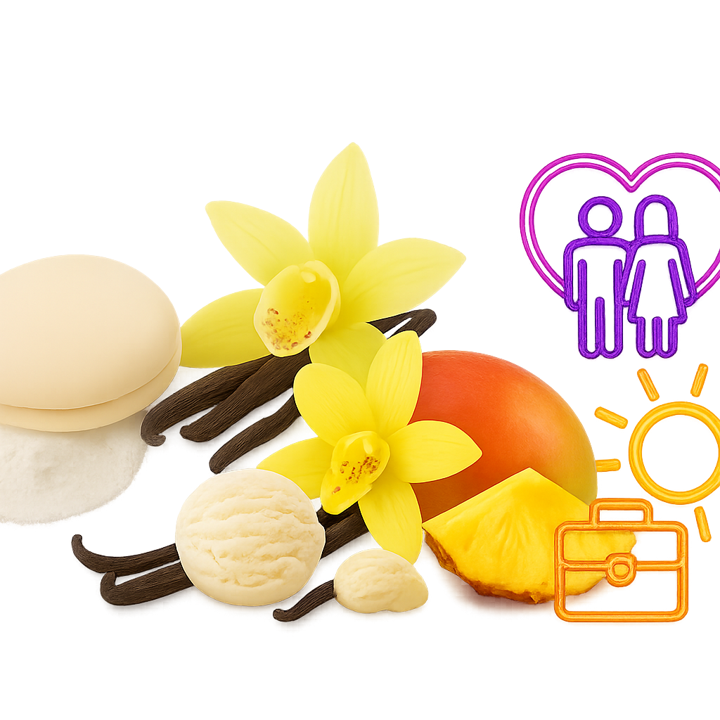 • Perfil Olfativo: Atalcado, Avainillado, Dulce, Frutal, Gourmand, Tropical